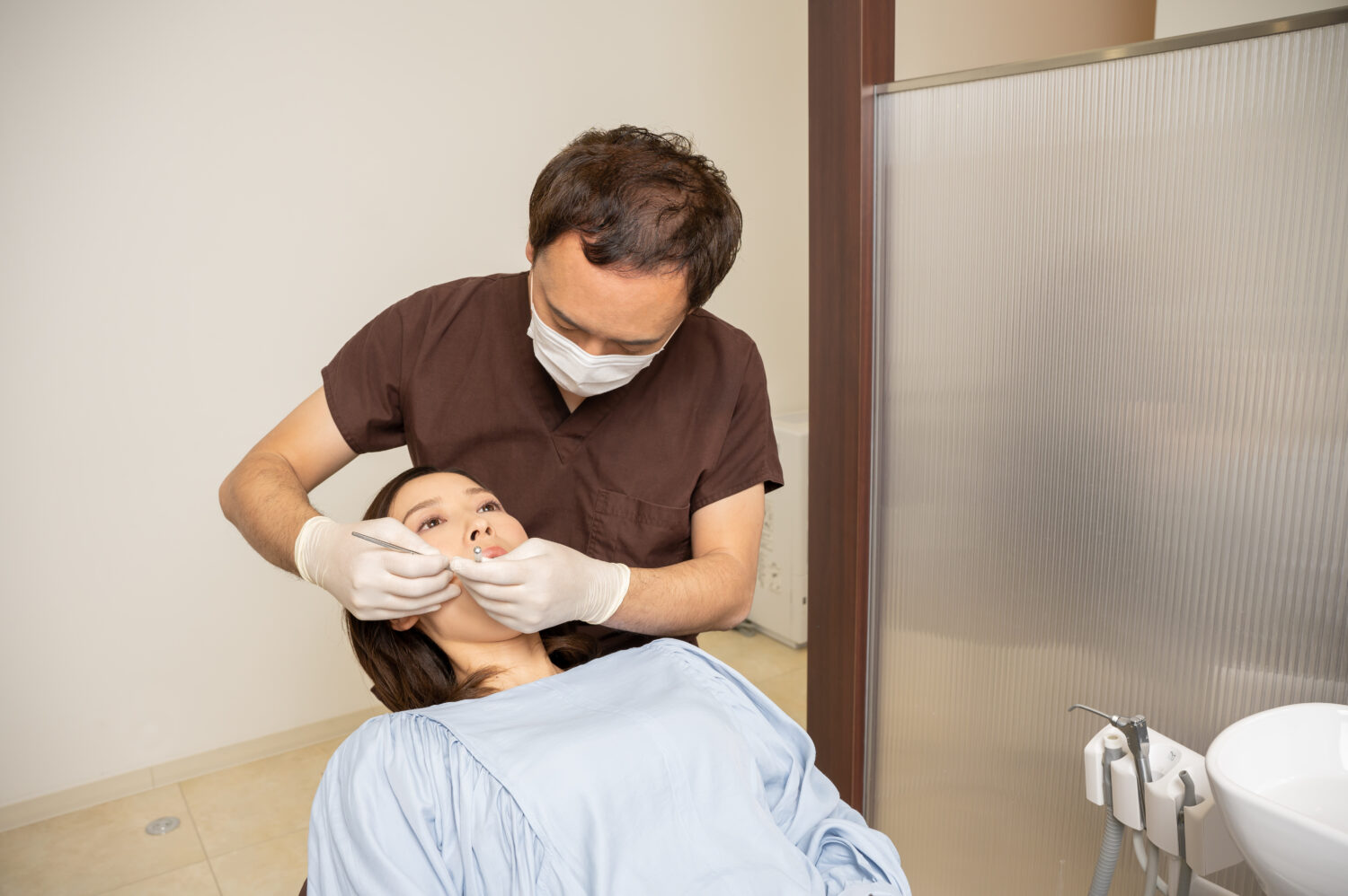 まず汚れの除去や消毒を行います。治療の効果を高めるために重要なステップです。歯ぐきの状態を確認し、治療に適した状態かどうかを判断します。必要に応じて事前のクリーニングも行います。