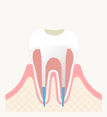 むし歯治療と同じで、軽度の場合は根管充填剤で事足りますが、重度の場合、歯の大部分を削ります。 その際は治療が完了時、医師の判断のもとに被せ物を作り、装着して治療完了となります。