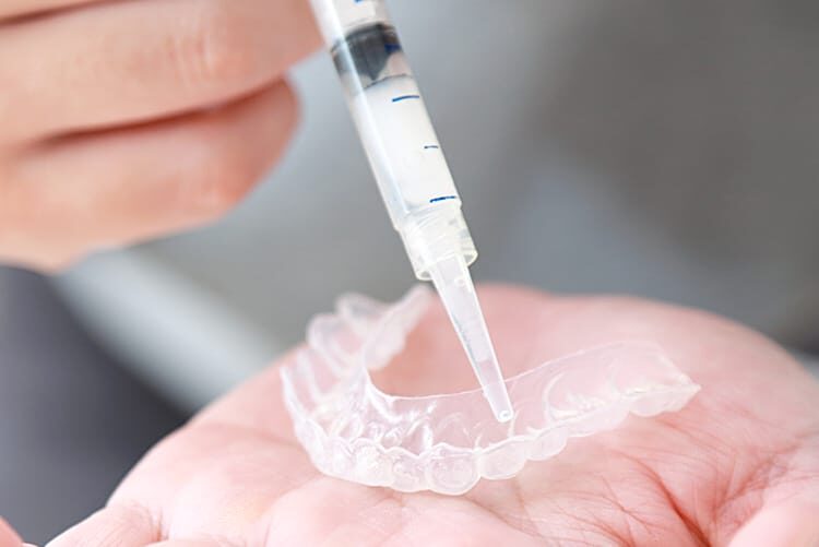 患者さんご自身が家庭で、歯科医院で処方された薬剤入りの既成トレーを装着する方法です。1日90分ほどの装着時間が必要ですが、1回使いきりで衛生的であり、また、過酸化水素6%が含まれたジェルが初めからトレーに充填されており、装着することで歯面にぴったりと薬剤が付着することで、ダイレクトなホワイトニングの効果が期待できるため、手軽なホワイトニングが可能です。